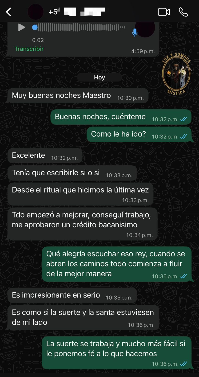 Las siguientes evidencias muestran conversaciones reales con clientes que han obtenido resultados positivos gracias a nuestros trabajos espirituales.