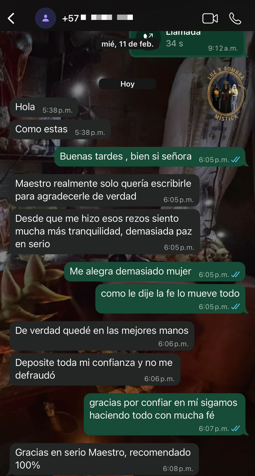 Las siguientes evidencias muestran conversaciones reales con clientes que han obtenido resultados positivos gracias a nuestros trabajos espirituales.